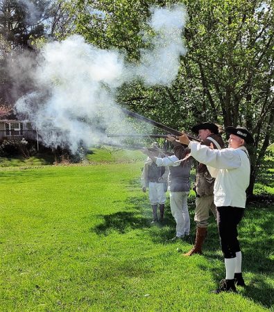 The musket squad firing a salute, from left to right: Mac Johnson, Sean Carrigan, Kevin Combs and Rob Richmond.