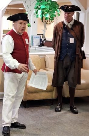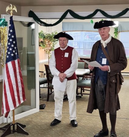 On March 24, 2023, the Colonel James Wood II and Culpeper Minutemen Chapters of the Virginia Society Sons of the American Revolution conducted presentations on Patrick Henry to the residents of senior living facilities in Warren County.