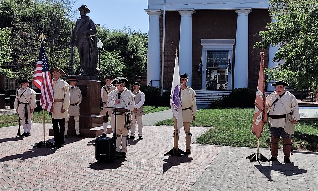 On July 4, 2022, the Colonel James Wood II Chapter of the Virginia Society Sons of the American Revolution read the Declaration of Independence on the Walking Mall in Winchester, Virginia. They marched on the mall to the front of the Old Courthouse, where they posted the flags before reading the document. It was on July 4, 1776, Congress declared the following: “The unanimous Declaration of the thirteen United States of America, when in the course of human events, it becomes necessary for one people to dissolve the political bands which have connected them with another, and to assume among the powers of the earth, the separate and equal station to which the Laws of Nature and of Nature’s God entitle them, a decent respect to the opinions of mankind requires that they should declare the causes which impel them to the separation.”
