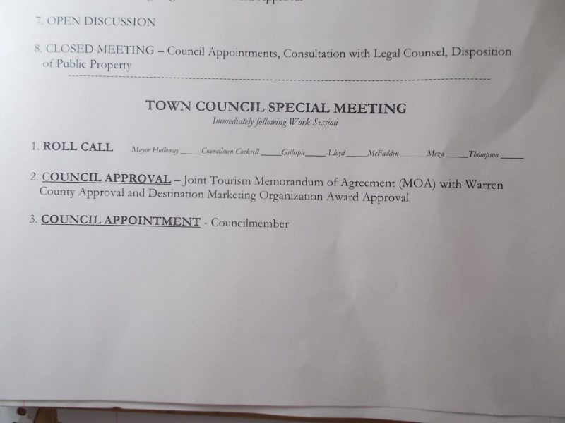 Done deal? – in addition to the roll call for two Jan. 4 Closed Session votes, Jacob Meza’s name also appeared on the Jan. 4 work session/special meeting agenda as a voting member of the new council to convene the Special Meeting at which the nominations and vote to fill Chris Holloway’s vacant seat were to be taken.