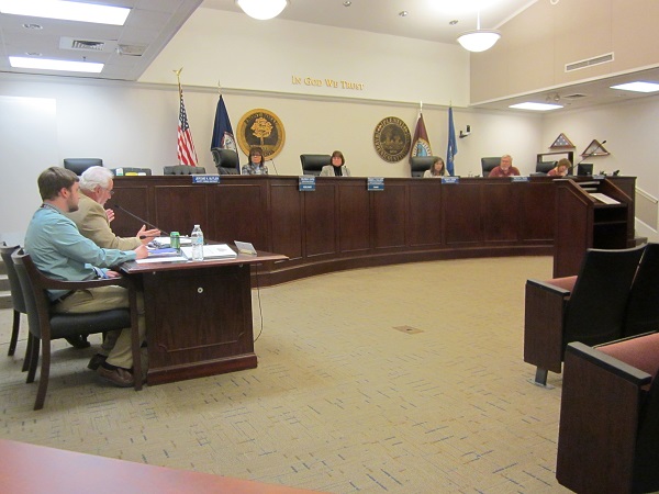 Joe Andrews explains why he thinks the County should get out of the Sanitary District business, including bad advice from staff – that staff listening from table at back of room.