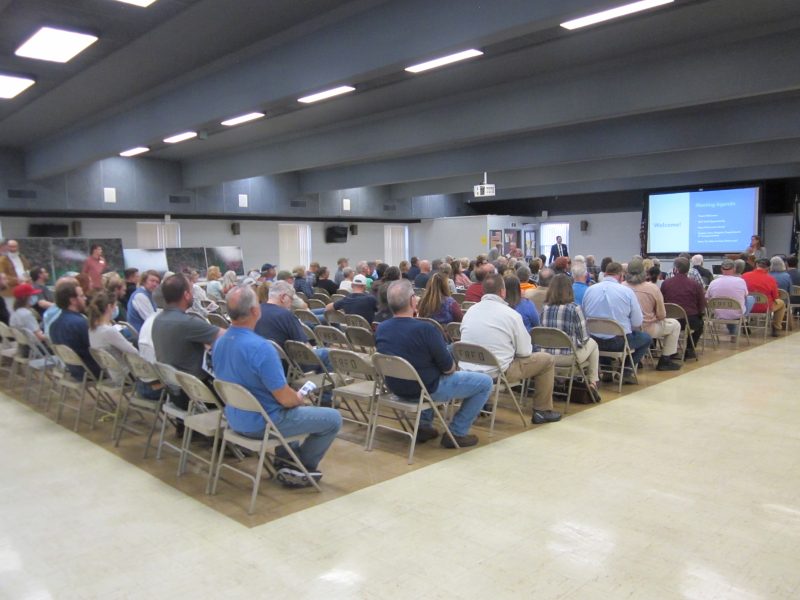 Front Royal Mayor Lori A. Cockrell initiates the meeting agenda with a welcome from the host town government, and introduction of other local and Rail Trail Partnership participants. Below, it was a well attended event. Some present were still at surrounding informational tables as the official presentations began.