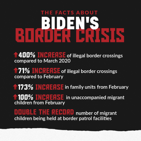 This week, Customs and Border Protection (CBP) released new data regarding the crisis at our border. Last month alone, more than 170,000 migrants illegally crossed our border, which is a 400 percent increase from March of last year and a 71 percent increase from February. This now means more than 350,000 migrants have tried to cross the border in 2021. Further, there is double the record number of unaccompanied minors in custody, which currently stands at 20,000+ between CBP and HHS holding facilities. To make matters worse, the President’s $1.52 trillion budget proposal includes a zero percent funding increase for the Department of Homeland Security to help CBP do their jobs effectively. Finally, the President has tasked Vice-President Harris as the de facto “Border Czar,” yet she has yet to visit our border to see the crisis firsthand. This Administration must address this worsening humanitarian and economic crisis.