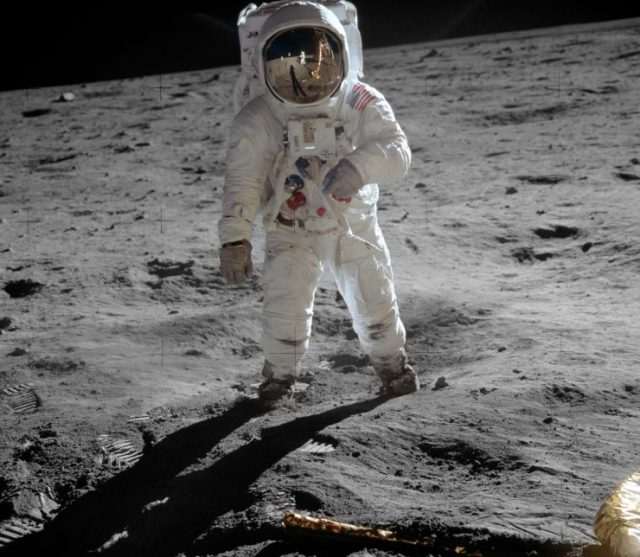 Buzz Aldrin poses on the Moon, allowing Neil Armstrong to photograph both of them using the visor’s reflection. By NASA – http://www.hq.nasa.gov/alsj/a11/AS11-40-5903HR.jpghttp://www.archive.org/details/AS11-40-5903 (TIFF image), Public Domain, https://commons.wikimedia.org/w/index.php?curid=3847764