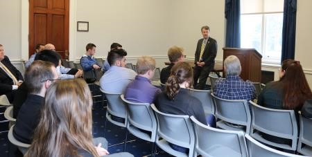 Rep. Cline talks with students visiting D.C. from Liberty University’s Automobile Dealership Management Program.