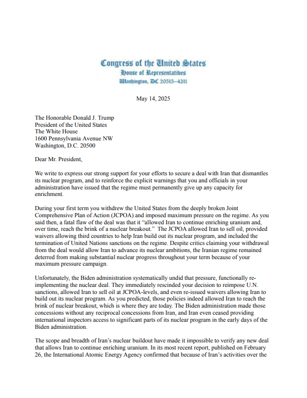 Last week, I joined my Republican Study Committee colleagues in urging President Trump to stay the course in dismantling Iran’s dangerous nuclear program.