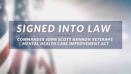 Recently, the President signed into law two pieces of legislation aimed at addressing mental health issues. The first of the two bills is the Commander John Scott Hannon Veterans Mental Health Care Improvement Act, which addresses Veteran suicide by providing essential support to community-based organizations, expanding access to new therapies for behavioral health, increasing support for those with other than honorable discharges, and funding additional suicide prevention coordinators. Further, the President signed the National Suicide Hotline Designation Act, which designates 9-8-8 as the universal telephone number of the national suicide prevention and mental health crisis hotline system. Mental health advocates say 9-8-8, a simple three-digit number, will be easier for people to remember in the midst of a mental health emergency. Please note that the 9-8-8 number will not be operational until 2022. At this time, please dial 1-800-273-TALK (8255) to reach the National Suicide Prevention Lifeline. Both pieces of legislation have the potential to save countless lives, and I was proud to support them on the House Floor.
