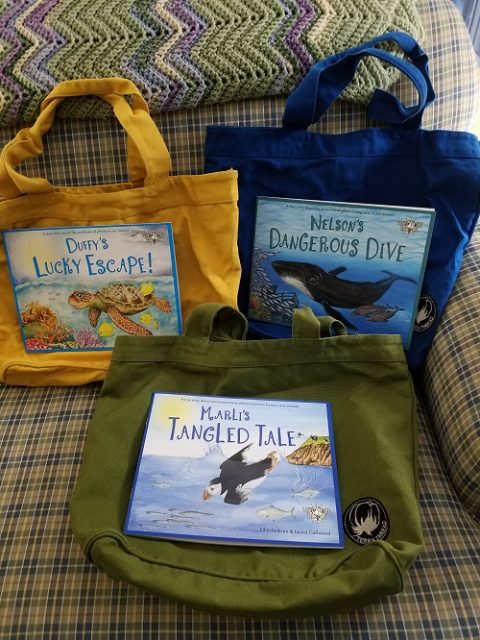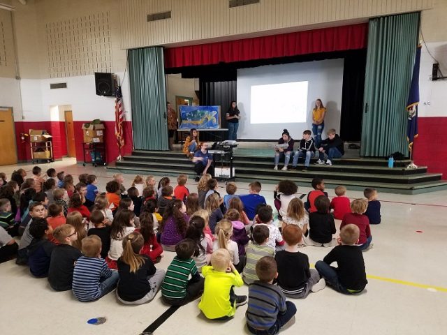 Nearly 400 bags and books were distributed during the educational assemblies in which SHS students shared lessons about how the kindergarten students can reduce, reuse, and recycle in order to help our aquatic friends.