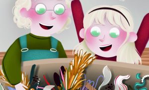 Gradually, the children’s faces lit up. With the help of the twins, they’d finally found their inspiration. Thanking them, Sylvio and Jasmine headed off to create ornaments in their image. The boy made a pineapple-shaped hot air balloon, and the girl decided on a guitar-playing penguin.