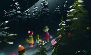 On one particular night in December, Orion and Capella were allowed to stay up late. This was because they were taking part in Snow Island’s first-ever lantern walk. Trailing behind their parents, they followed other hikers through the woods along the Star Trail. Soon, the group would arrive at the observatory where they would be able to admire the night sky and, if they were lucky, catch a glimpse of the northern lights.