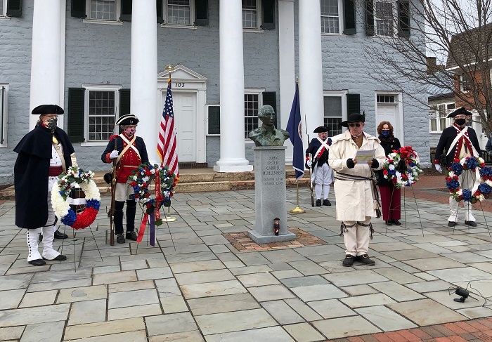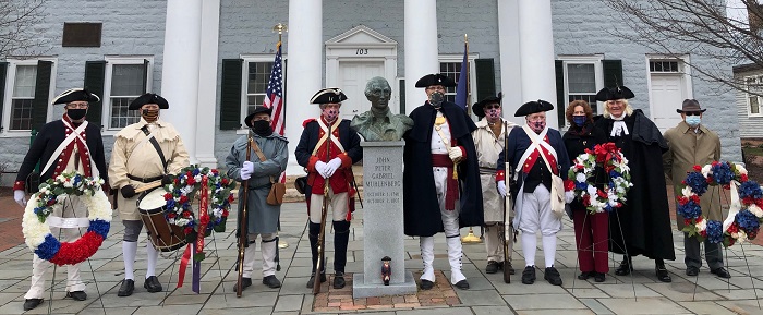 On January 24, 2021, the Colonel James Wood II (CJWII) Chapter of the Virginia Society Sons of the American Revolution (VASSAR) co-sponsored a commemoration for Peter Muhlenberg, Pastor and Revolutionary War Hero. Co-sponsoring were the Narrow Passage Chapter of the Daughters of the American Revolution and the Woodstock Wednesday Men’s Prayer Group.