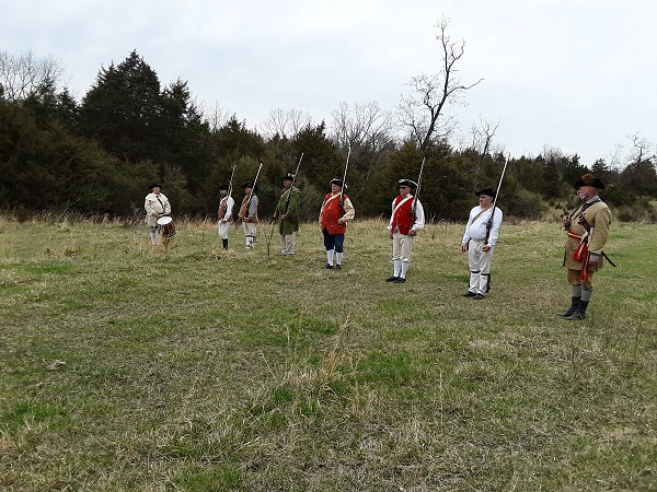 The musket squad preparing to fire. From left to right: Doug Hall, Barry Schwoerer, Thomas “Chip” Daniel, Mike Dennis, Erick Moore, Dennis Parmerter, Sean Carrigan and Brett Osborn.