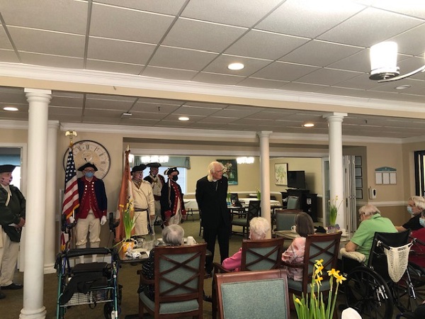 On March 29, 2021, the Colonel James Wood II Chapter of the Virginia Society Sons of the American Revolution sponsored a salute to Vietnam Veterans at the Commonwealth Senior Living Facility in Front Royal. Compatriots from the chapter were there to provide a commemoration for National Vietnam Veterans Day. Larry Johnson provided prayers, and Marty Keesecker led the group in the Pledge of Allegiance.