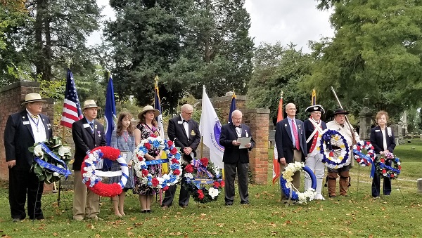 On October 9, 2021, the Colonel James Wood II Chapter of the Virginia Society Sons of the American Revolution (VASSAR) participated in grave marking ceremony for two Patriots of the American Revolution interred at St. Paul’s Episcopal Church Cemetery in Alexandria, Virginia. The event was conducted by the George Washington Chapter of the Virginia Society with color guard support provided by the Virginia Society State guard.