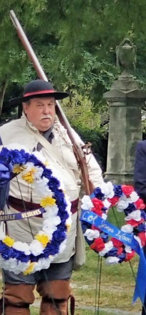 Color Guardsmen participating for Colonel James Wood II Chapter were Sean Carrigan, Dale Corey, Brett Osborn and Marc Robinson. Dual members included Ken Bonner and Dave Cook (both of Fairfax Resolves. Forrest Crain and David Huxsol of the Fairfax Resolves completed the guard.