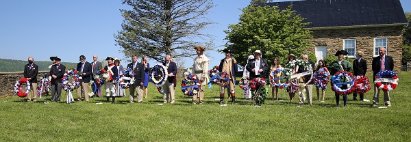 Wreaths were presented by Jeff Thomas, President Virginia Society SAR; Paul Walden, President Society of the War of 1812 (Virginia) and Mike Taimi, the Order of the Founders and Patriots of American, Virginia Society. SAR Chapters presenting wreaths included Ross Schwalm, President the Colonel William Grayson; Forrest Crain, Vice President, Fairfax Resolves; Will Reynolds, Colonel James Wood II; Ken Morris, President George Mason; Harley Stewart, Past President Williamsburg; Charles Jameson, President Culpeper Minutemen; Robert Bruce, Historian Norfolk; Paul Cox, Colonel Lewis Fielding; Doug Schwetke, Major K. M. Zandt (Texas) and Marty Keesecker, 2nd Vice President West Virginia SAR/President General Adam Stephens (West Virginia) Chapters.