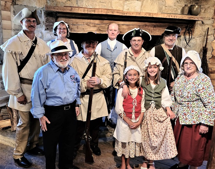 The French and Indian War Foundation and Mercer’s Company were present to provide drill demonstrations, a campsite and musket drills. Participating for the chapter were Thomas “Chip” Daniel, Paul Christensen, Will Reynolds, Barry Schwoerer, Jacob Schwoerer and Jim Simmons with dual member Marty Keesecker. Marlyn Keesecker and Anne Simmons from the DAR assisted with the program.