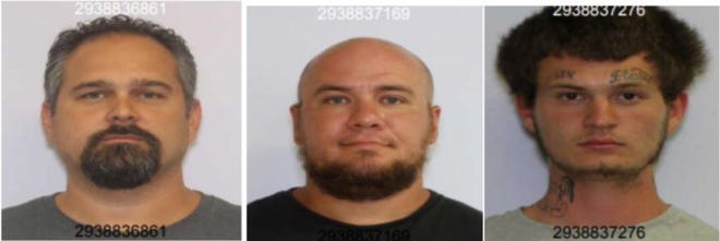 Thomas Rhoads, 39, William Christopher Flynn, 31 and Dominick Michael Rhoads, 19, with murder in the shooting deaths of Daquavious Antonio Tillison, 24, and Lorenzo Sanchez Hunter, 33. Photo courtesy of Anderson Police Department.