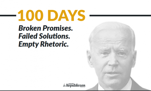 Regardless of party, the American people expect Congress to act on their behalf, and I have made it a practice to work with my colleagues on both sides of the aisle to address many of the critical issues facing our Nation. Bipartisanship must be the goal in moving the country forward, and I was hopeful that following President Biden’s calls for unity in his inauguration speech he would govern in a productive and positive manner. But sadly, the President has abandoned his pledges of unity and bipartisanship and has completely ceded to the left-wing base of his party. In his first 100 days, he has created a dangerous crisis at the southern border that threatens our national and health security, refused to lead the way in reopening our schools and our businesses, gutted thousands of jobs, bailed out failed liberal states and cities with taxpayer dollars, made moves to raise taxes on American families, and proposed or spent nearly $6 trillion in an effort to fundamentally alter our economy and push our Nation further into the abyss financially. This Administration and the Democrat Party no longer think in terms of millions or billions of dollars, but rather trillions and American workers and families will soon pay the price for the runaway deficit spending we’ve seen over the past few months.