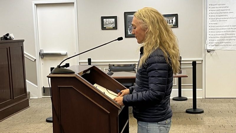 Executive Director of the Warren Coalition Christa Shifflett explains to the commission the merits of an application for a special-use permit to operate a lodging house as a recovery facility.