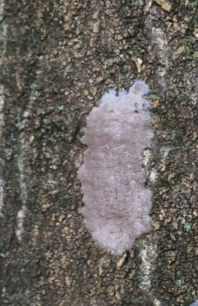 Spotted lanternfly egg mass. (Photo courtesy Doug Pfeiffer, Virginia Tech)