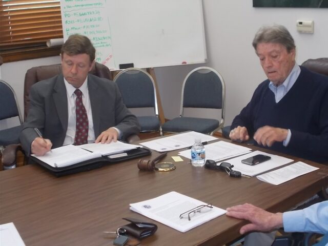Douglas Parsons takes notes to EDA Board Chairman Gray Blanton’s right, our left, as the EDA Board of Directors, minus absent Mark Baker and two vacant seats, appoints him its new executive director. Royal Examiner Photo/Roger Bianchini