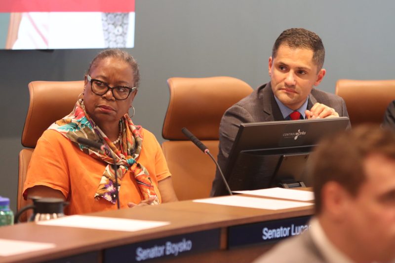 Sen. Mamie Locke, D-Hampton (left), chair of the Senate Subcommittee on Higher Education, and colleagues may discuss the University of Virginia and other higher education institutions at a retreat starting Thursday at Radford University. (Nathaniel Cline/Virginia Mercury)