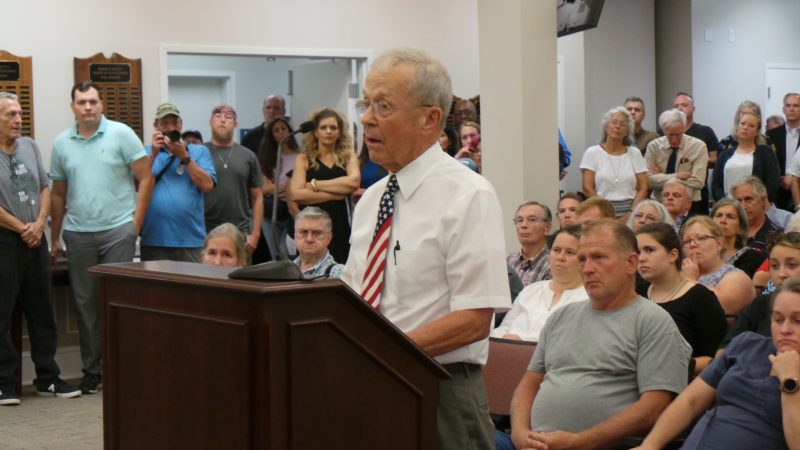 John Lundberg, speaking at July 26 meeting, was one of several citizens present for Acts 1 and 2 of this political drama. Other July 26 public speakers also present Aug. 2, were Stevie Hubbard and Gene Kilby.