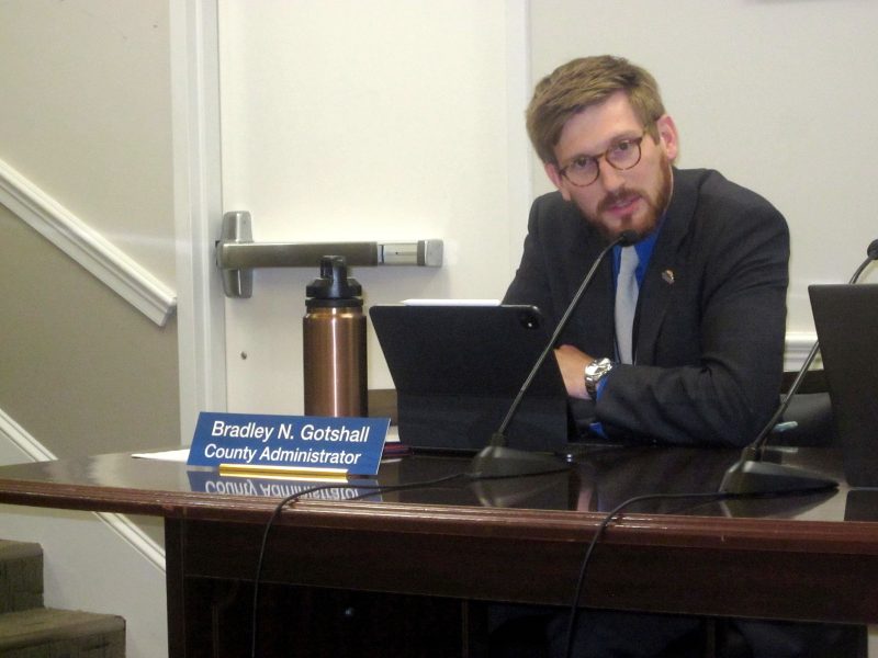 In opening board comments on the county administrator situation, Supervisor John Stanmeyer, along with Jamieson a member of the board who hired Gotshall, said this: “First of all regarding the resignation of Mr. Gotshall I just wanted to say I was not pleased to see that happen or how it unfolded. And to me, he was definitely professional. And I did not have serious concerns about his performance at all. I wish him well in his future endeavors. I’m looking forward to turning the page and this board coming together in unity to conduct a thorough search and find the right successor. I’m also pleased to have Ms. Meadows in the acting county administrator position for the time being.