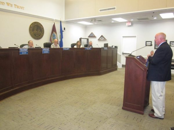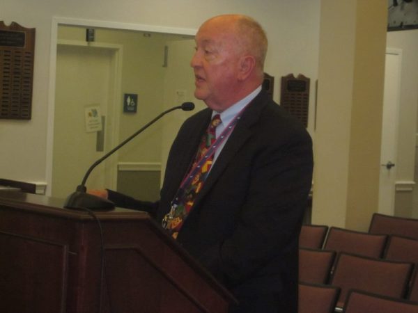 The County Recognition Certificate to the 12-and-under State Champion Little League team will have to wait a week to be presented. Below, in the Little League team’s absence, County Public Schools Acting Superintendent David Martin kicks the meeting off. Royal Examiner Photos Roger Bianchini