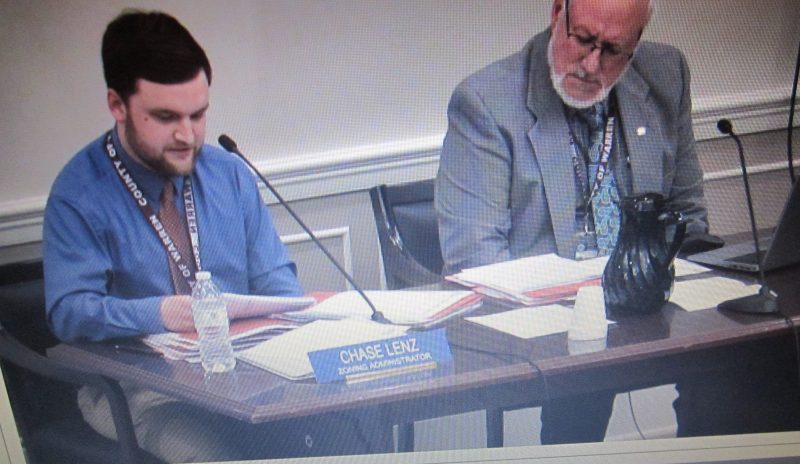 County Zoning Administrator Chase Lenz, left, and Planning Director Matt Wendling handled summaries of the proposals before the supervisors at Tuesday evening’s Public Hearing meeting.