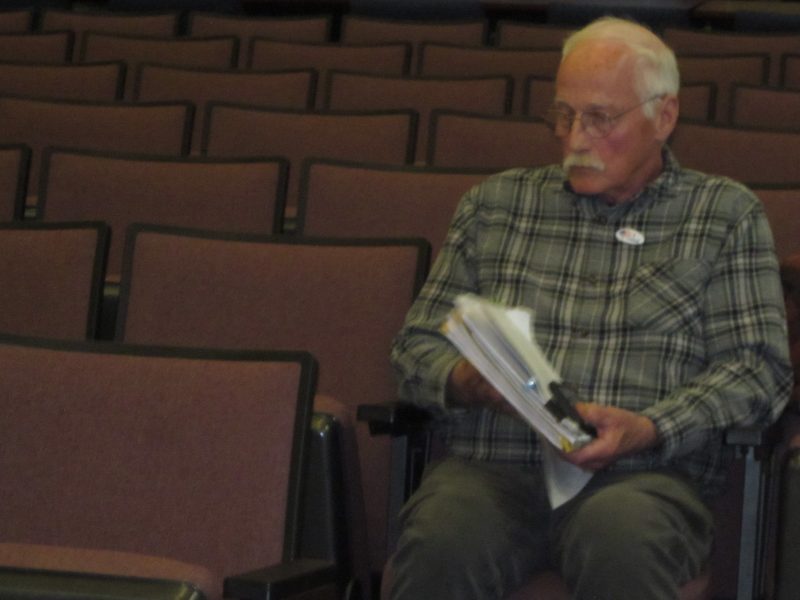 The board and its Chair listened carefully to Andrew Heymann’s argument against being included in a Buck Mountain Road area name change. But based on public safety issues and guidelines approved the change to Jockey Hollow Rd. Heymann, seated below, took the denial of his exclusion well. Royal Examiner Photos Roger Bianchini
