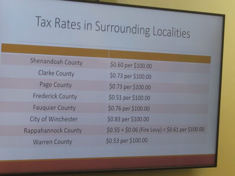 Two charts presented in the County FY-25 Budget revenue and expenditures report from the county administrator. It might be noted that WC has the second lowest displayed tax rate 2-cents above Frederick Co. and 20-cents below Page and Clarke Counties, among other comparisons.