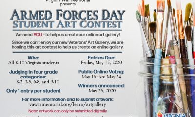 The Virginia War Memorial is seeking submissions for its first ever Armed Forces Day Student Art Contest. Saturday, May 16, 2020, is Armed Forces Day. Recognized...