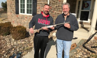 The Colonel John S. Mosby Camp, Sons of Confederate Veterans, Camp 1237 Commander Bruce Colton presented a Thompson/Center 50 caliber muzzle-loading rifle to Blaine Keller...