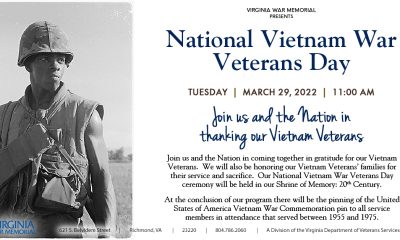 In honor of the fifth anniversary of National Vietnam War Veterans Day, the Virginia Department of Veterans Services (DVS) will recognize the more than 230,000 Virginia...