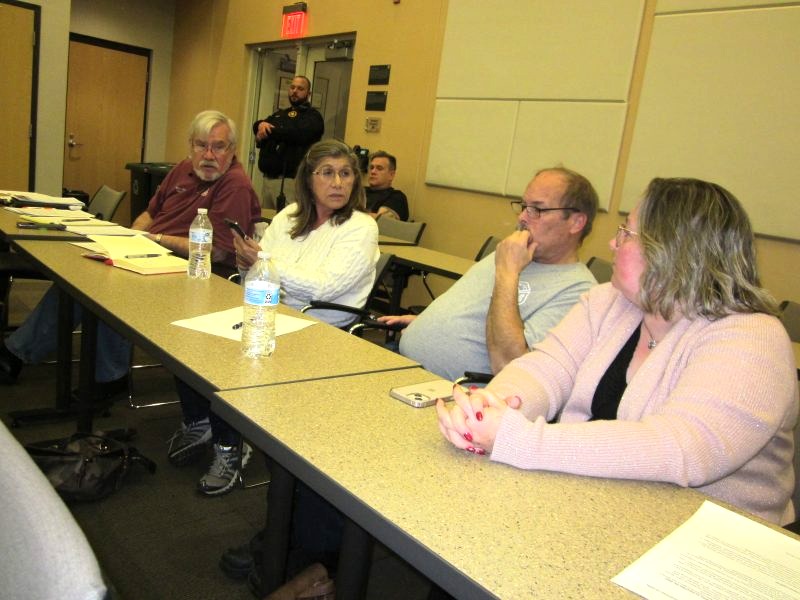 Is there a body language message being sent here? Advisory Committee member Todd Tennant, far left, suggested the involved sides attempt to move beyond past ‘vitriol’ toward ‘a spirit of cooperation moving forward’. Below, new county board Chair Vicky Cook joined Shenandoah District Supervisor Walt Mabe on the County side. Her body language isn’t quite as tight as some. Photos by Roger Bianchini, Video by Mark Williams, Royal Examiner.