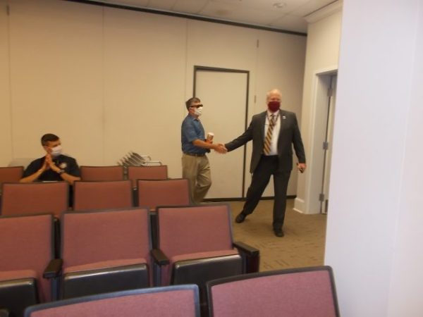 Former POSF Chairman Ralph Rinaldi discusses the group’s move to void the 2-party contract giving WC management authority over the Farms Sanitary District signed in 2011, with County Administrator Ed Daley after presenting that initiative to the supervisors last year. – ‘Your board realizes we’re not trying to cut ourselves OUT of the equation, right?’ Rinaldi may have been thinking. Speaking of Warren county administrators, below are two – one about to become former, one about to become future. Can you tell which masked county administrator is which?