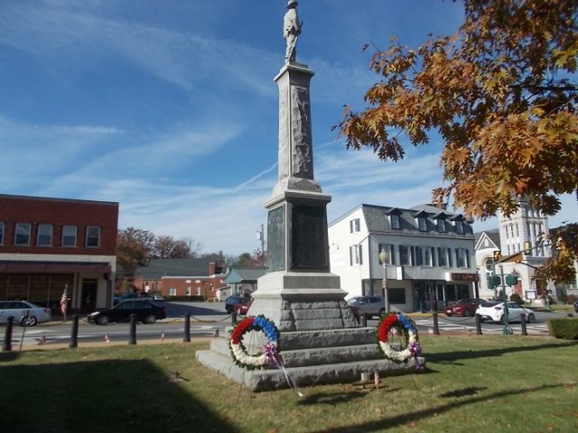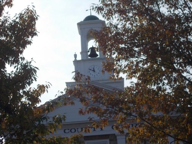 Uh oh, somebody forgot to turn the Courthouse Bell Tower clock back to standard time – it was really 10 till 11 AM as the traditional time of 11 AM on the 11th day of the 11th month commemorating the Armistice that ended World War One in 1918 approaches. Royal Examiner Photos/Roger Bianchini