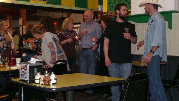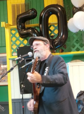 This month’s celebration got a jump-start Wednesday, April 6th with, as the evening’s MC and first performer Shae Parker pointed out, the first live musical performances in The Melting Pot’s half century of business – staff “Happy Birthdays” excepted. Hey, the former car wash site wasn’t designed, remodeled and expanded for musical performances, but for food prep, delivery, and customer service. But then, this is a special occasion.