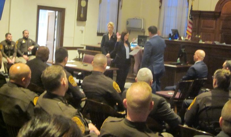 At 5 p.m. Thursday, December 28, as the Warren County Courthouse doors were locked for the day, freeing up the bailiffs doing courthouse security, incoming Sheriff Crystal Cline greeted 63 Warren County Sheriff’s Office deputies, including those bailiffs and family members to county Circuit Courtroom “A.” The occasion was a swearing-in ceremony conducted under the auspices of Circuit Court Clerk Angela “Angie” Moore. Long-time Front Royal Police Department officer, and most recently Captain Cline, expressed her appreciation for the deputies’ service and their and their families’ sacrifices of time devoted to their work in upholding the laws and legal procedures of the Commonwealth of Virginia at the local level.