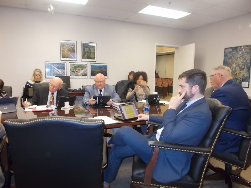 Above, the newly configured, virtually broadcast Front Royal Town Council has gotten 2021 off with a BANG – appointing former Councilman Jacob Meza, below in foreground at January 2020 work session, four days after his term expired. There are conflicting legal opinions on whether that violates a Town Charter Section prohibiting appointments of council members to positions under the council’s ‘jurisdiction’ for a year following their departure from council. Royal Examiner File Photos by Roger Bianchini