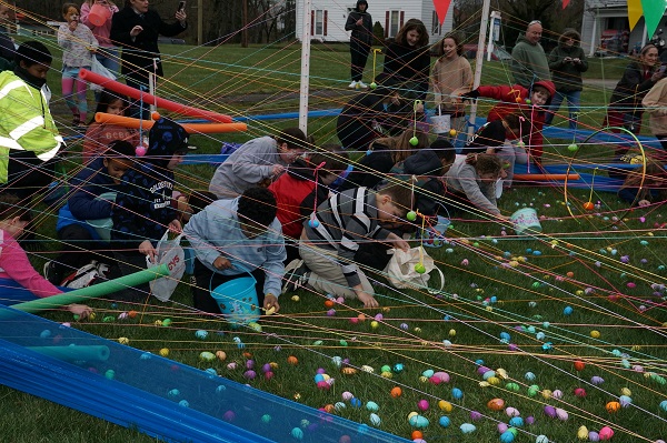 4 to 6 year-olds chase down 1,000 eggs in grassy field. Courtesy Joe Zollinger.