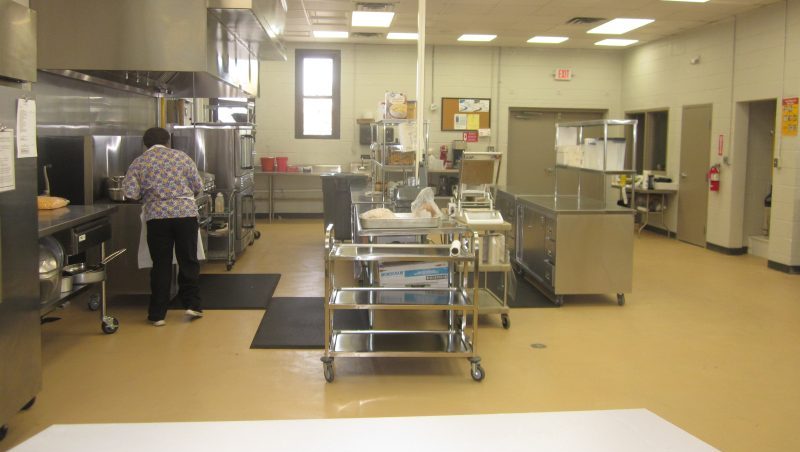 Two perspectives on the new WC Senior Center location. In the first photo, the gated entrance is to the left, obscured by columns. In the second picture the Senior Center is the center, single story building. The final shot is of the new kitchen, now serving. Royal Examiner Photos Roger Bianchini