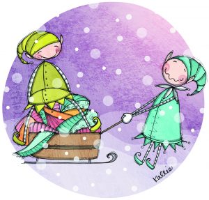 Knowing the smartest elf couple in the North Pole are taking care of the problem, the reindeer begins to get her supplies for the day ready. Less than 15 minutes later, Jack and Nougat arrive pulling a sled piled with dozens of colourful scarves behind them. Working together, they wrap all the day care’s pipes in the warmest knit scarves in the world.