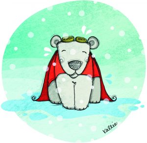 On the starting line, Snowflake is one of 57 swimmers. He’s nervous and excited about his first race. Across the river, he can see his parents, grandma, his friends from the North Pole Animal Day Care and his teacher, Rudolpha the reindeer, supporting him. He thinks about what his father, the reigning champion of the race, told him during their training sessions in Floe Creek: “keep your rhythm, look in front of you and don’t forget to breathe.”