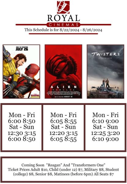 This Week’s Showtimes at Royal Cinemas as of August 22nd