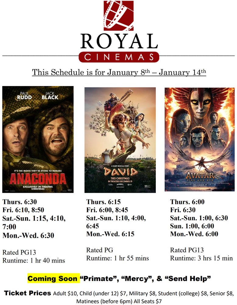 This Week’s Showtimes at Royal Cinemas as of January 8th