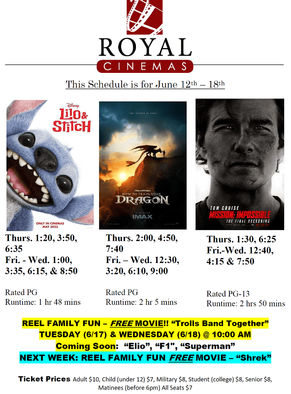 This Week’s Showtimes at Royal Cinemas as of June 12th