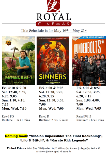 This Week’s Showtimes at Royal Cinemas as of May 16th